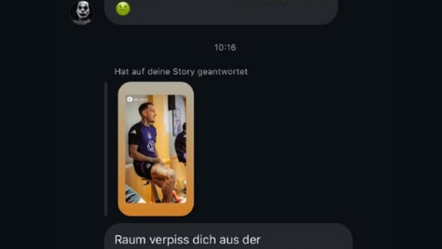 In seiner Instagram-Story veröffentlichte der Linksverteidiger, der am Montag den Assist zum Goldtor von Nick Woltemade beigesteuert hatte, Hass-Nachrichten, die er nach dem Spiel erhalten hatte.